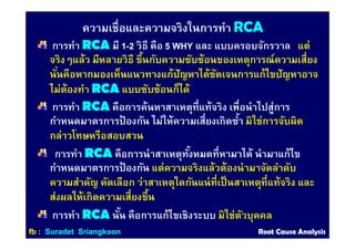 เป็นเครื่องมือที่จะช่วยให้การแก้ปัญหาหรือการพัฒนาคุณภาพมีความยั่งยืน ไม่เกิดเหตุการณ์ไม่พึงประสงค์/ความเสี่ยงที่สำคัญซ้ำขึ้นอีก ด้วยการวิเคราะห์ให้เห็นถึง สาเหตุของปัญหาที่แท้จริง/ต้นตอของปัญหา (ระบบ ) มิใช่ แก้ปัญหาที่ปลายเหตุ ( บุคคล ) และนำมากำหนดมาตรการป้องกันและพัฒนาต่อไป