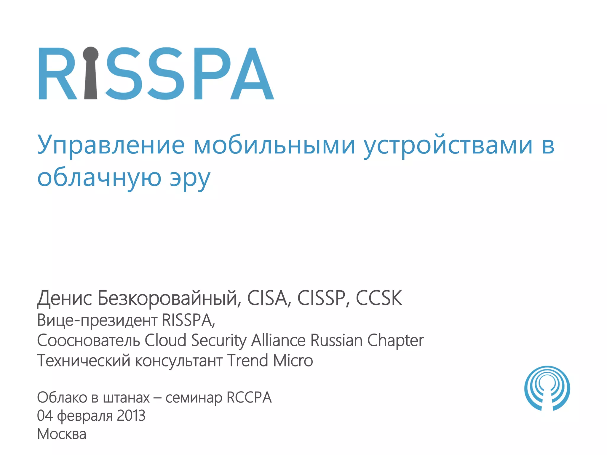 Документ обсуждает управление мобильными устройствами в условиях облачных технологий, акцентируя внимание на важности соответствия нормативным требованиям и безопасности. Он исследует различные подходы к мобильной безопасности, такие как контейнеризация и использование MDM, а также рассматривает факторы, влияющие на выбор MDM-систем. Автор подчеркивает, что необходимо разработать стратегию для интеграции мобильности в бизнес-процессы.