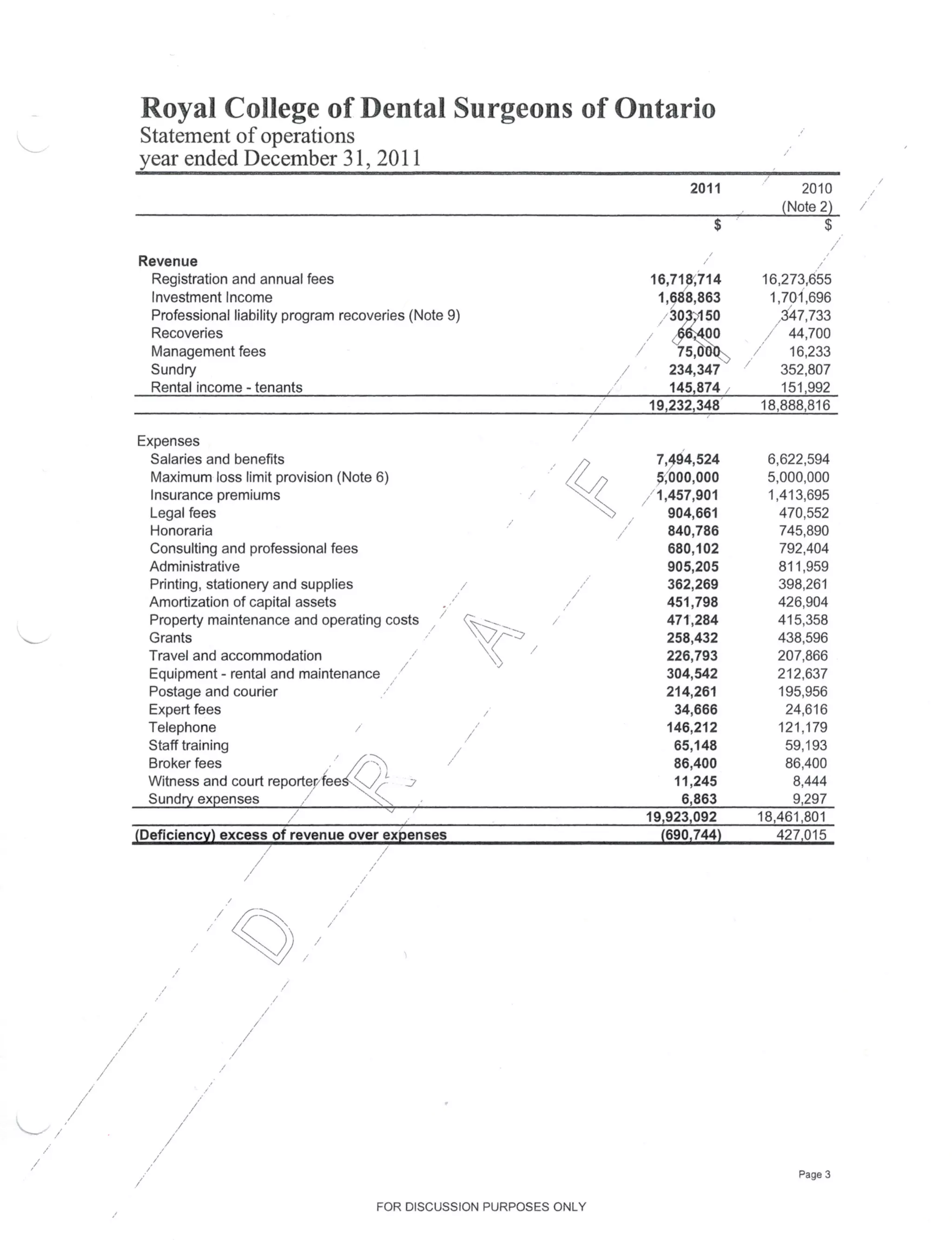RCDSO 2011 Operating Budget