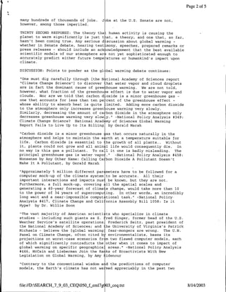 This document is an email newsletter from the National Center for Public Policy Research discussing global warming. It provides background on upcoming Senate debates and hearings on global warming legislation. It also excerpts arguments questioning the scientific consensus on human-caused global warming, including that the best climate models cannot accurately predict future temperatures or humankind's impact. Recommended links are included for additional information from analyses questioning the extent and causes of global warming.