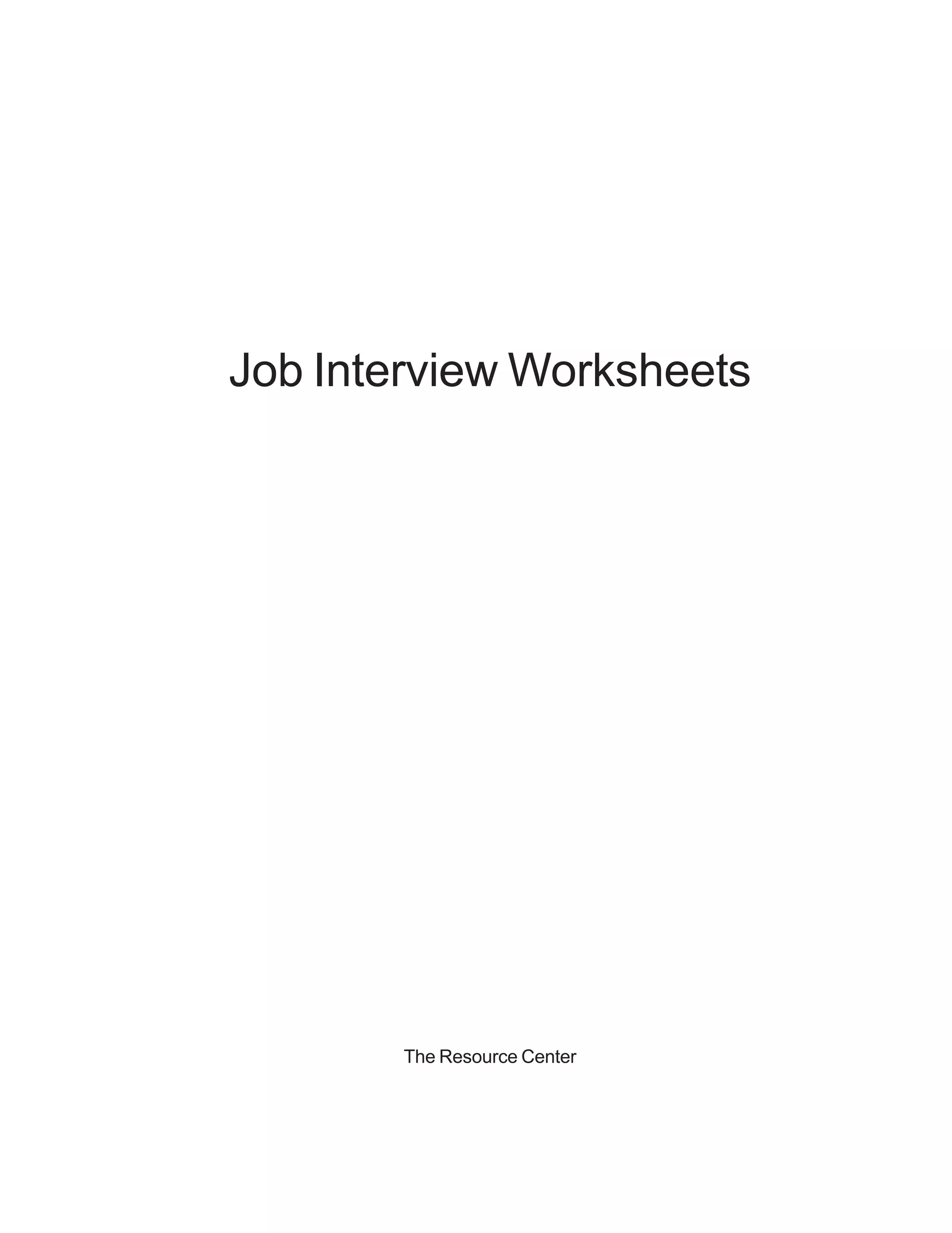 The document provides worksheets and guidance to help job seekers prepare for interviews. It outlines steps one should take, such as researching the company, dressing appropriately, and following up with a thank you note. It also lists things to avoid, like being late, acting entitled, or speaking negatively about previous employers. The document aims to help job seekers understand what interviewers look for in candidates and how to make the best possible impression.