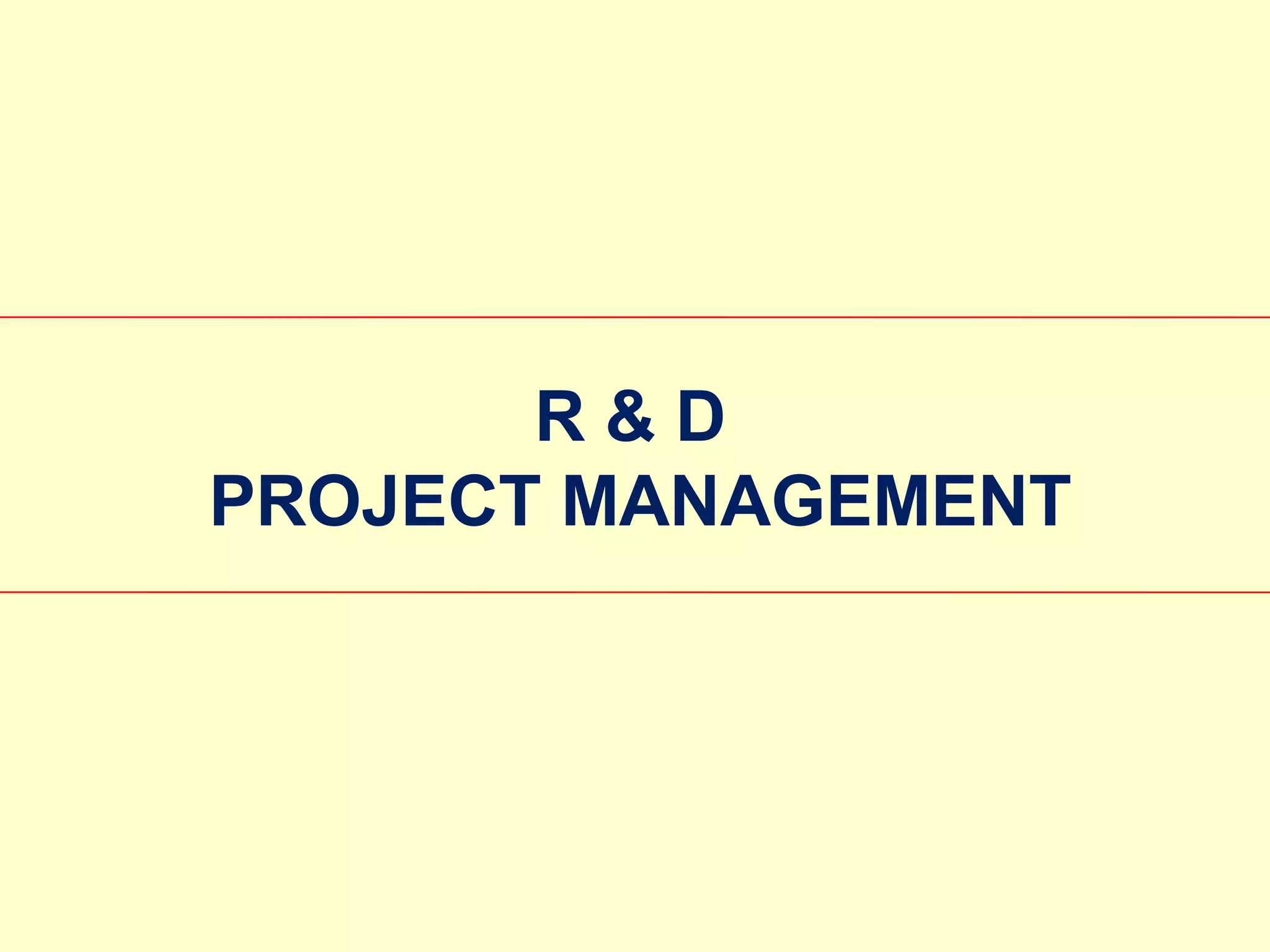 Project management is defined as a process of planning, organizing, staffing, coordinating and controlling all activities of a given R&D project to achieve predefined objectives. The objectives of project management are to minimize project expenditure and time while effectively utilizing resources to achieve qualitative and quantitative results. The stages of project management include pre-project planning, project initiation, execution, outcomes, transfer, and termination. Elements of project planning and controlling involve preliminary coordination, work, budget, and schedule plans as well as status reporting and monitoring techniques like PERT and CPM.