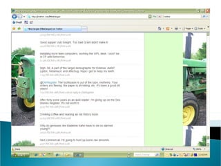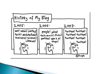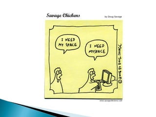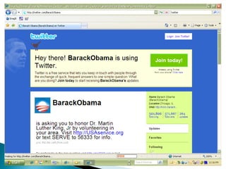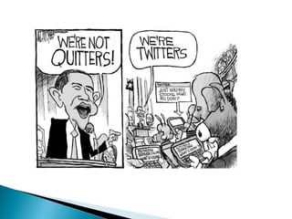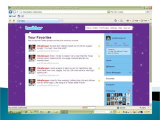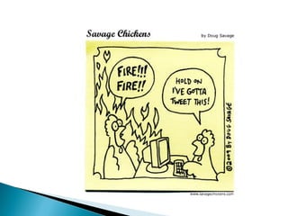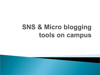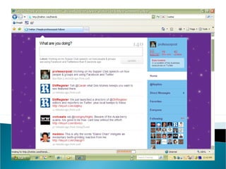 The document discusses social networking sites and microblogging, focusing on popular platforms like Facebook and Twitter, and their impact on communication and collaboration. It highlights trends in mobile computing and how these tools are utilized by individuals and organizations for social engagement and activism. The author also raises concerns about privacy, user behavior, and the evolving nature of interpersonal relationships in the digital age.