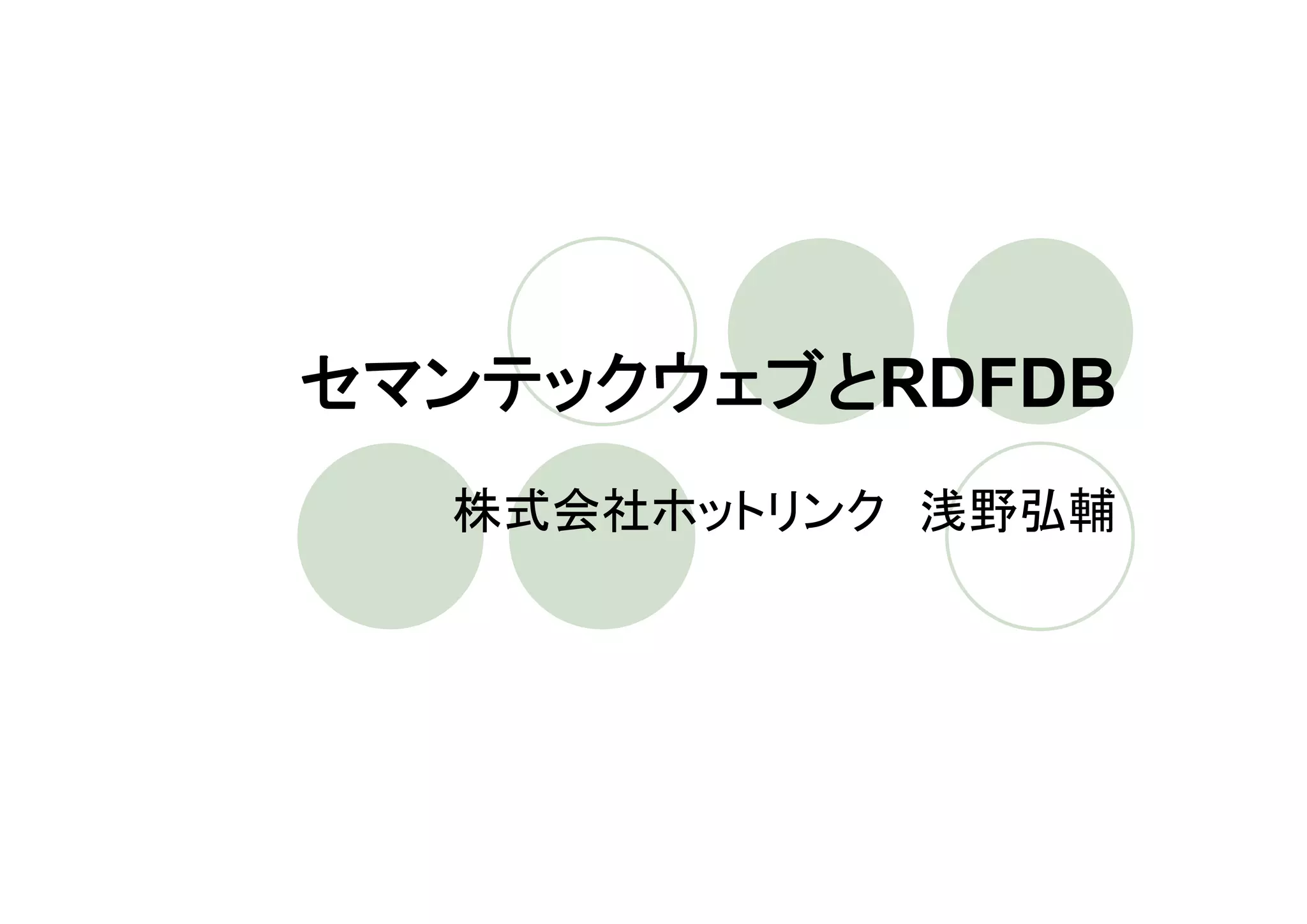 セマンテックウェブ技術の基本であるRDFの解説を中心に、そのデータストア技術であるRDFDBとクエリ言語であるSPARQLの触りまで解説しています。