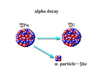 Radioactivity and the atomic nucleus were discovered in the late 19th century through experiments with uranium minerals. Three types of radiation - alpha, beta, and gamma - were identified. The atomic nucleus was determined to be stable when the ratio of protons to neutrons falls within the "band of stability." Nuclear models like the liquid drop and shell models were developed to explain nuclear stability. Radioactive decay follows first-order kinetics and half-lives can be used to date materials. Natural radioactivity occurs in uranium, thorium, and actinium decay series, while artificial radioactivity is induced through bombardment. Radiation poses health risks and proper safety measures should be taken when exposed.