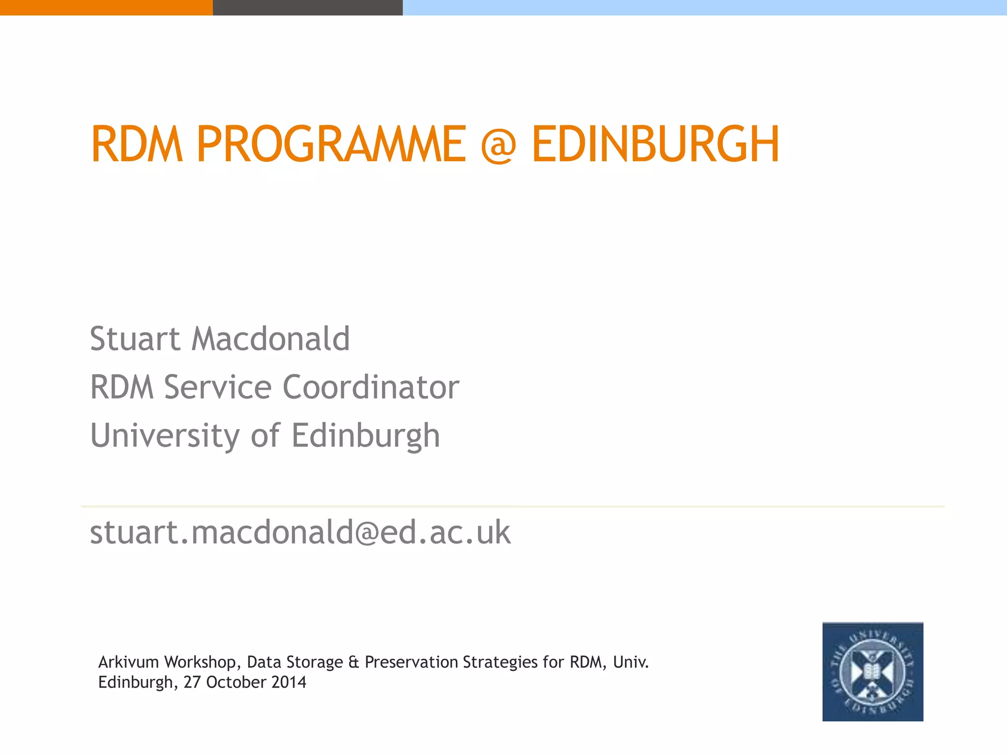 The University of Edinburgh has implemented a research data management (RDM) policy, recognized as one of the first in the UK, to manage research data effectively. The RDM program is structured in three phases, including planning, initial rollout of services, and continued development, offering services such as data management planning and data publication repositories. Additionally, training and support for researchers are emphasized, with resources like the DMPonline toolkit and various training programs available to aid in compliance and best practices in data management.