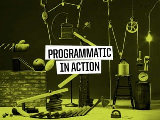 The document discusses programmatic advertising, highlighting its ability to target audiences effectively using various data types to optimize advertising campaigns. It includes survey insights from 232 marketers about their perceptions and future plans for programmatic advertising, revealing mixed feelings about budget allocation and organizational impacts. The text emphasizes the importance of real-time data and the evolving landscape of advertising technology.