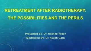 - Reirradiation or retreatments after initial radiotherapy is possible for 10% of cancer patients who experience a second cancer. However, if the radiation tolerance of a normal organ or tissue was exceeded in the initial treatment, reirradiation cannot be done safely.