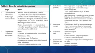 - Clinical studies on reirradiation are limited but show it can provide local control and possibly survival for head and neck cancers, though with high risks of toxicity and functional