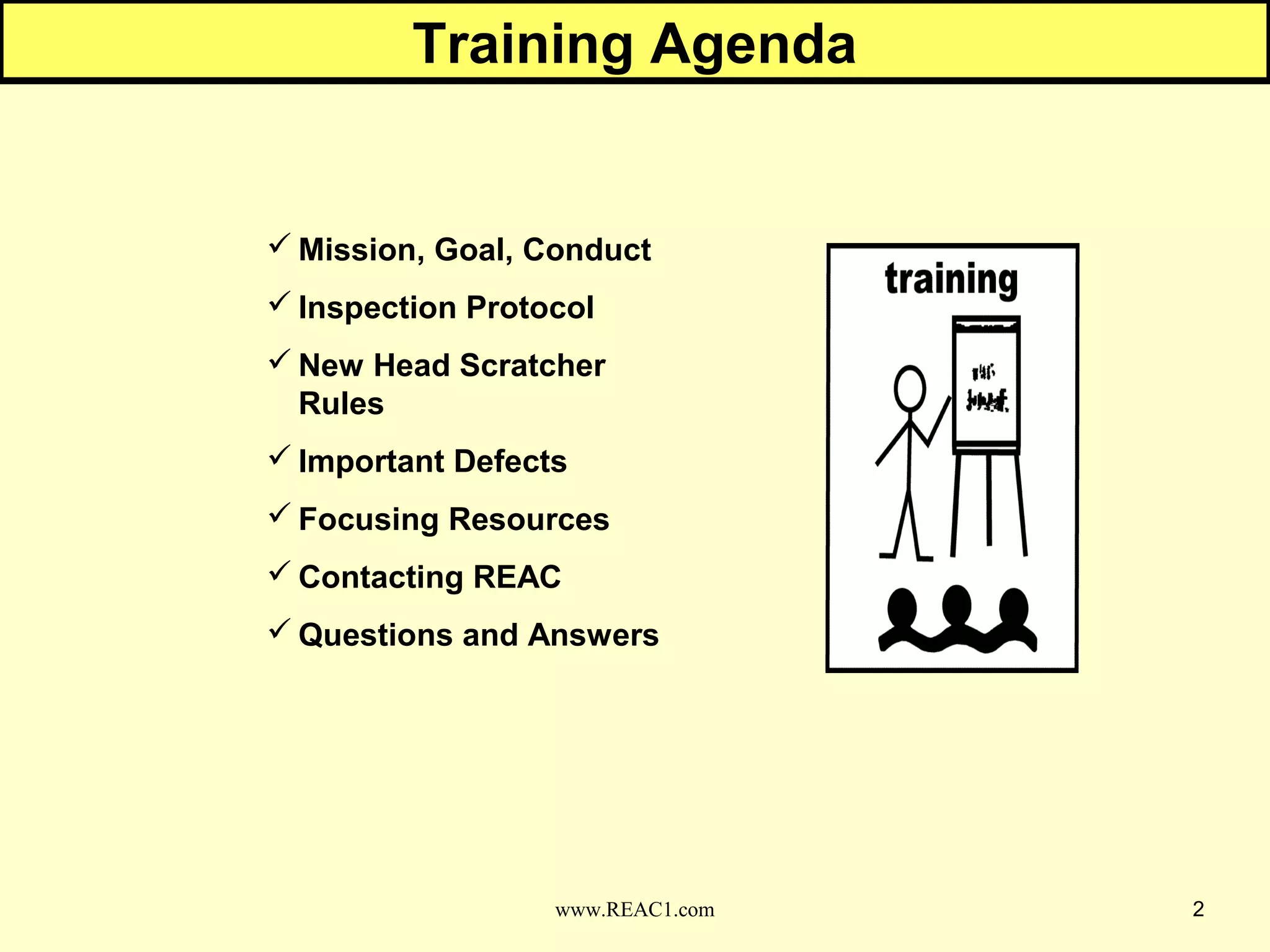 The document outlines the REAC (Real Estate Assessment Center) inspection fundamentals, including the mission to ensure housing is decent, safe, and sanitary. It details the inspection protocol based on Uniform Physical Condition Standards (UPCS), emphasizing the importance of code of conduct for inspectors to maintain objectivity and professionalism. Additional resources and links to the complete presentation are provided for further information.