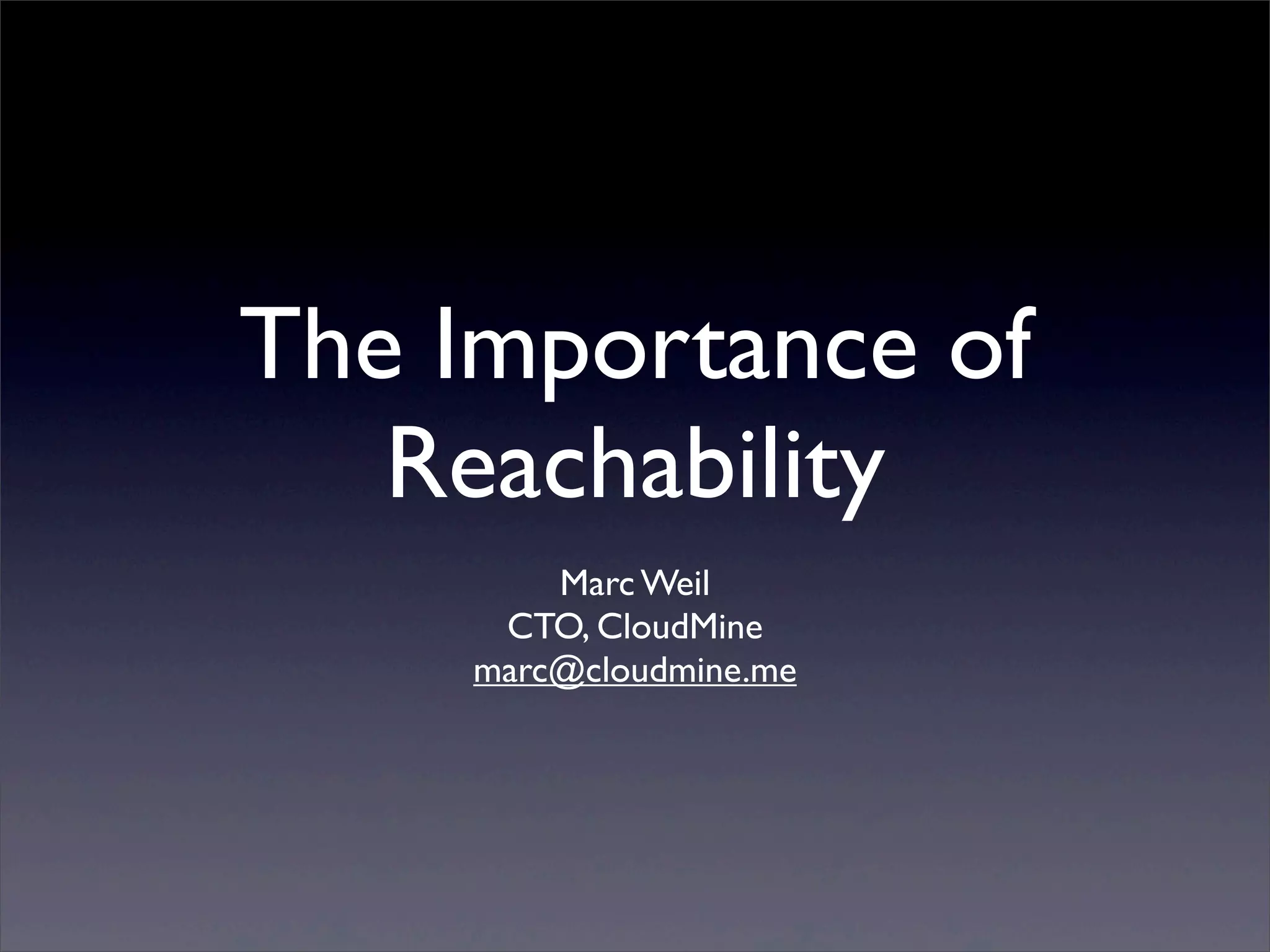 The document discusses the importance of reachability in programming, particularly in relation to handling network connections effectively. It critiques naive implementations of network requests in code that risk blocking the UI thread and lacking error handling. The author advocates for using `NSOperationQueue` and third-party libraries for better reachability management.