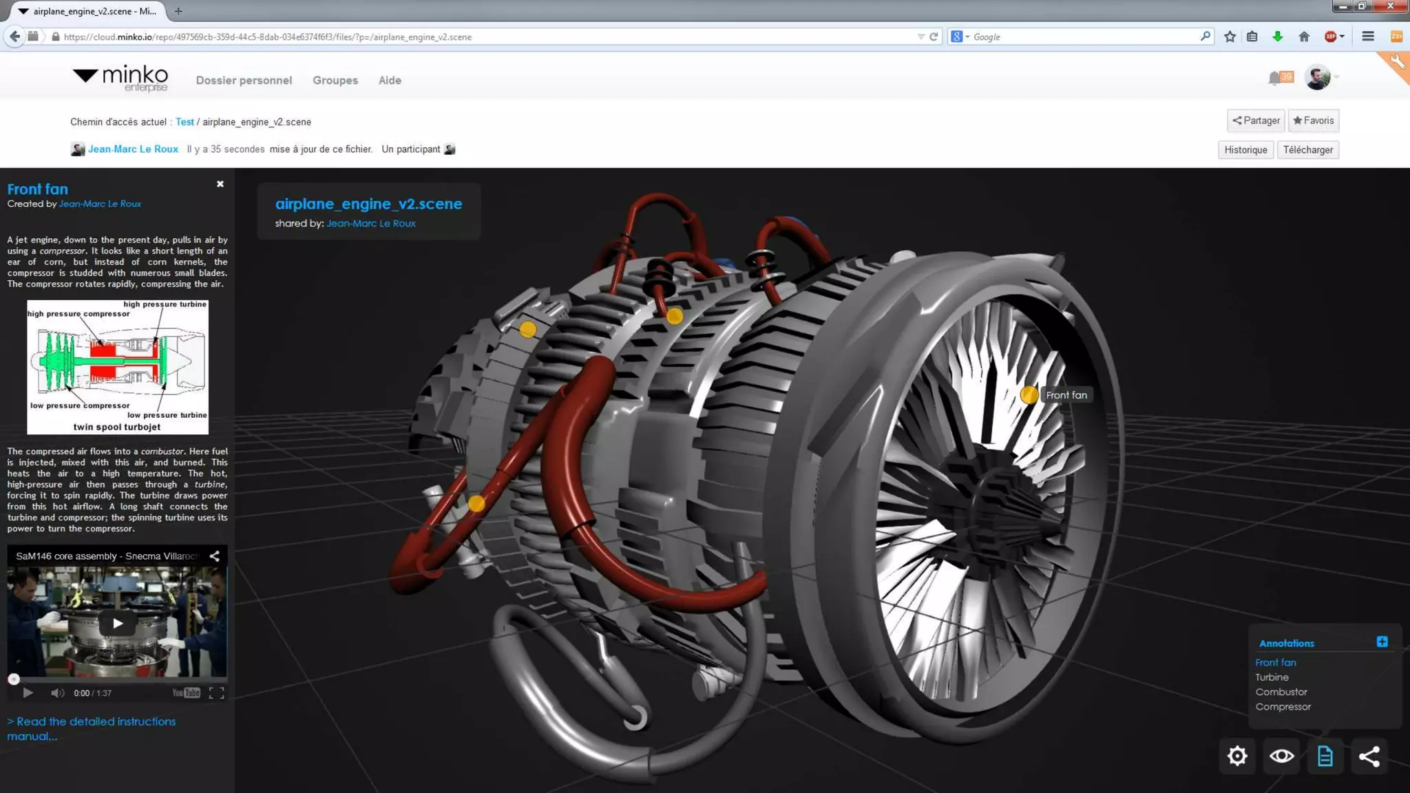 The document discusses the integration of React.js for 3D model applications, emphasizing features like automated optimization, versioning, and real-time collaboration. It outlines data handling through frameworks such as Meteor and Minko for data synchronization and 3D rendering, and describes the process of managing annotations on 3D models using JavaScript and C++. The highlights include cross-platform compatibility and a focus on performance and collaboration in 3D visualization.