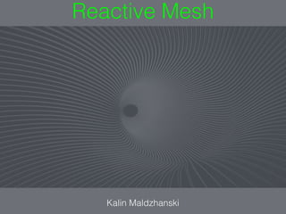 Reactive Mesh allows for functional reactive programming (FRP) in Java by composing functions reactively on events rather than pulling events. FRP is readable, avoids callback hell, and enables easy asynchronous computations. However, there are still problems to solve around painless communication across asynchronous boundaries, non-blocking push models to avoid out of memory errors, backpressure, and interoperability between different reactive implementations through standards like Reactive Streams. Popular reactive implementations discussed include RxJava 1.x & 2.x, Reactor Core, Akka Streams, and Agera.