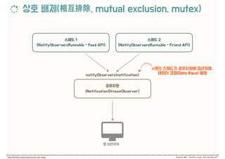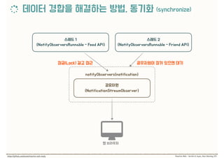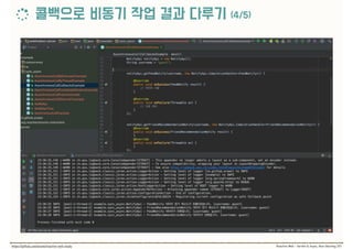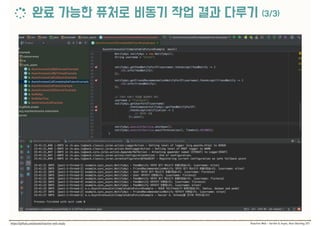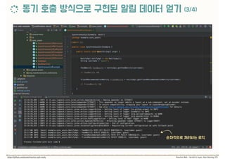 This document describes asynchronous programming techniques in Java including threads, executors, futures, and callbacks. It provides examples of making asynchronous API calls using threads, executors, futures that return results, and completion handlers with callbacks. The NotifyApi class is used to make asynchronous calls to get feed and friend notifications.