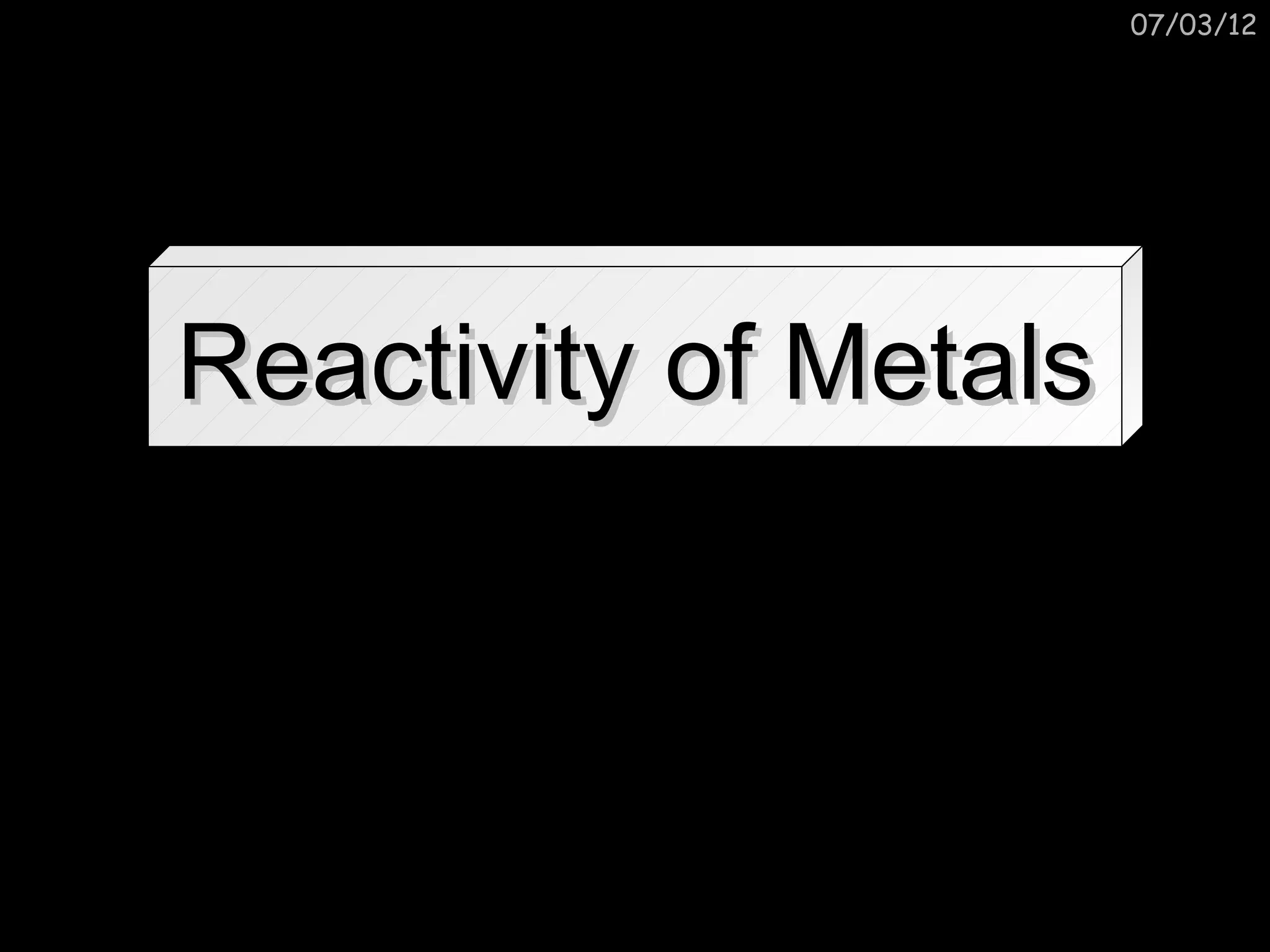 The document discusses the reactivity and reactions of various metals, including: