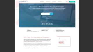 - Core concepts of React include JSX, components, unidirectional data flow, and the virtual DOM which improves performance compared to traditional frameworks. Components are reusable pieces that make up the entire application.