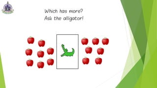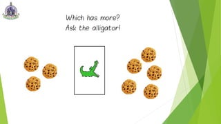 The document is an educational guide for a maths class focusing on the topics of counting, reading, writing, and comparing numbers. It introduces the concept of numerals and words for representing numbers and provides examples of both one and two-digit numbers. The document encourages engagement with numbers through counting items like books and pencils.