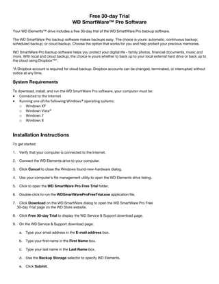 Your WD Elements™ drive includes a free 30-day trial of the WD SmartWare Pro backup software.