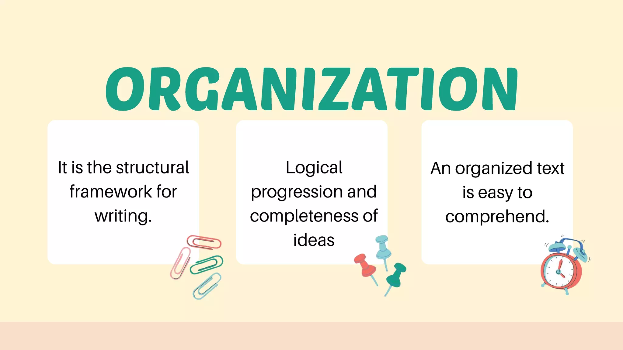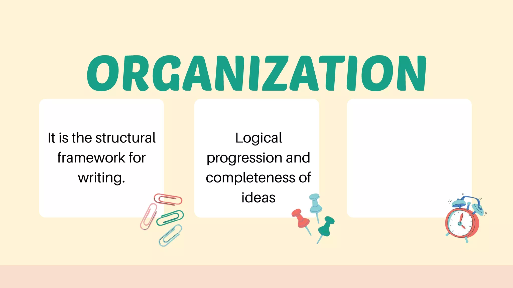 The document outlines a review for week 3 focusing on reading and writing skills. It includes learning objectives such as identifying story structure, writing personal narratives, organizing ideas, and constructing cohesive paragraphs. It also emphasizes the importance of coherence and cohesion in writing.