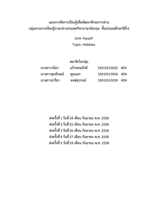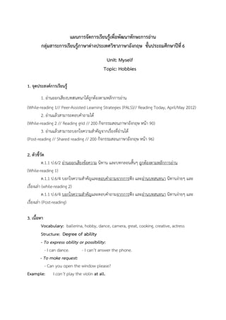 แผนการจัดการเรียนรู้เพื่อพัฒนาทักษะการอ่าน