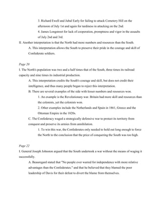 The document provides a summary of a reading log analyzing a book by James McPherson titled "American Victory, American Defeat." The log includes an MLA citation, major thesis, supporting evidence from various pages, and a section on the origin, purpose, values, and limitations of the source. The major thesis is that the will of northern and southern people was influenced by military victory. McPherson argues several turning points in the war influenced this, including battles in 1862-1863. The log analyzes internal and external interpretations for why the Confederacy lost and provides flaws for some arguments.