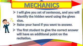 The document provides information about reading strategies of skimming and scanning. It defines skimming as reading quickly to get the main idea and scanning as reading quickly to find specific information. Examples are given of when to use each strategy. Learners are expected to identify the differences between skimming and scanning and apply the appropriate reading technique.