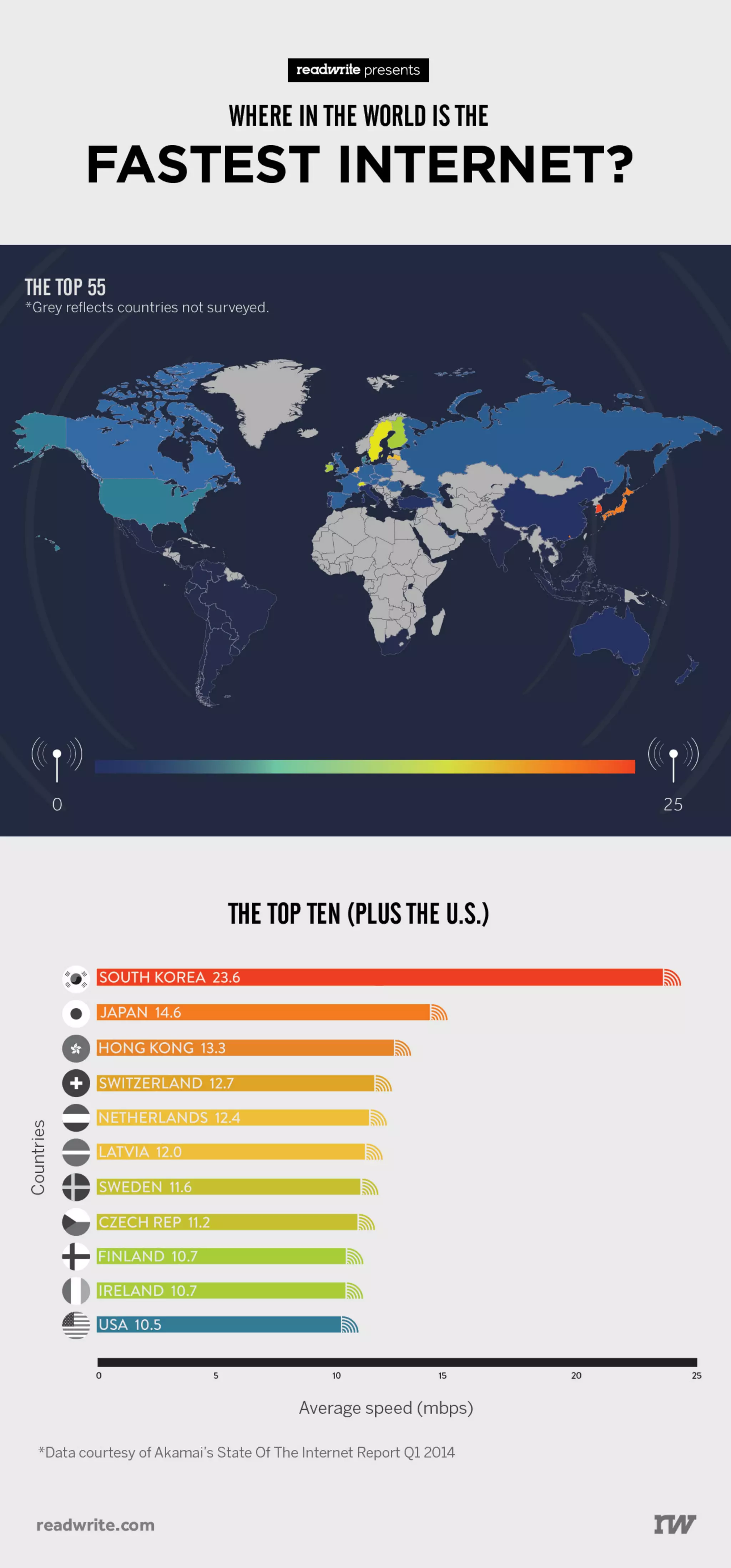The U.S. isn't even in the top 10 when it comes to broadband speeds. Here's a map of the world showing hotspots for high-speed connectivity.