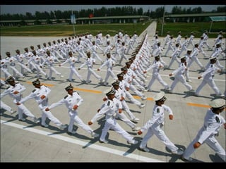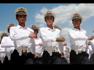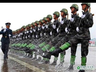 This document is a slideshow presentation about the story behind China's 2009 military parade commemorating the 60th anniversary of the founding of the People's Republic of China. It was created by Lai Yiyuan and thanks the viewer for watching the presentation about the 2009 military parade.