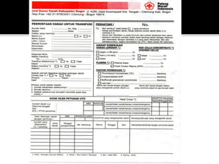 Transfusi darah adalah proses pemindahan darah dari donor ke resipien dengan tujuan pengobatan, yang melibatkan pemeriksaan identitas pasien dan pengawasan ketat selama transfusi. Penanganan reaksi transfusi, baik ringan maupun berat, harus dilakukan dengan cepat dan tepat, termasuk pemberian obat sesuai kebutuhan. Dokumentasi dan pemantauan yang baik diperlukan untuk memastikan keamanan dan efektivitas proses transfusi.
