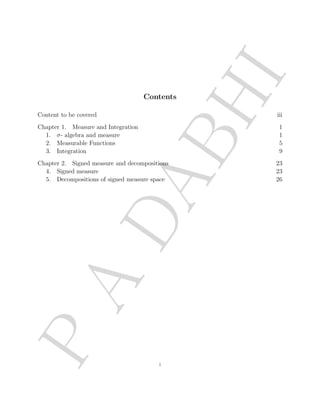 2. Signed measures, Hahn decomposition, Jordan decomposition, Lebesgue decomposition theorem, Radon-Nikodym theorem.
