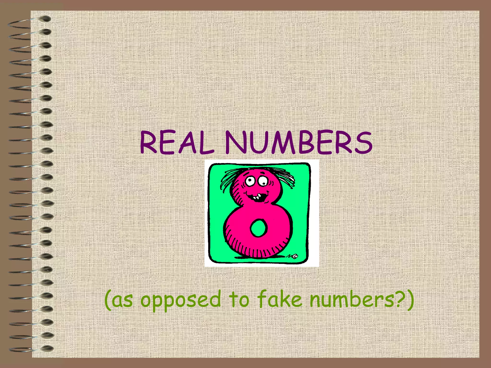 This document defines and provides examples of different types of real numbers: