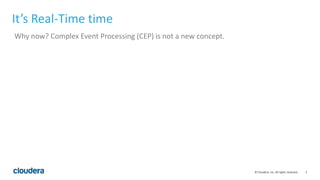 The document discusses the significance of real-time analytics using Kafka and Spark Streaming, highlighting its emergence due to the rapid increase in continuous data streams and the availability of open-source tools. It provides examples from various industries, demonstrating applications like fraud detection, real-time traffic management, and personalized digital marketing. It also outlines the canonical stream processing architecture and introduces an example application called 'Pankh' to showcase real-time analytics capabilities.
