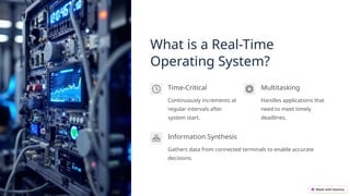 RTOS types are classified based on tolerance degree for missed deadlines. Hard systems include ABS and airbag controls,