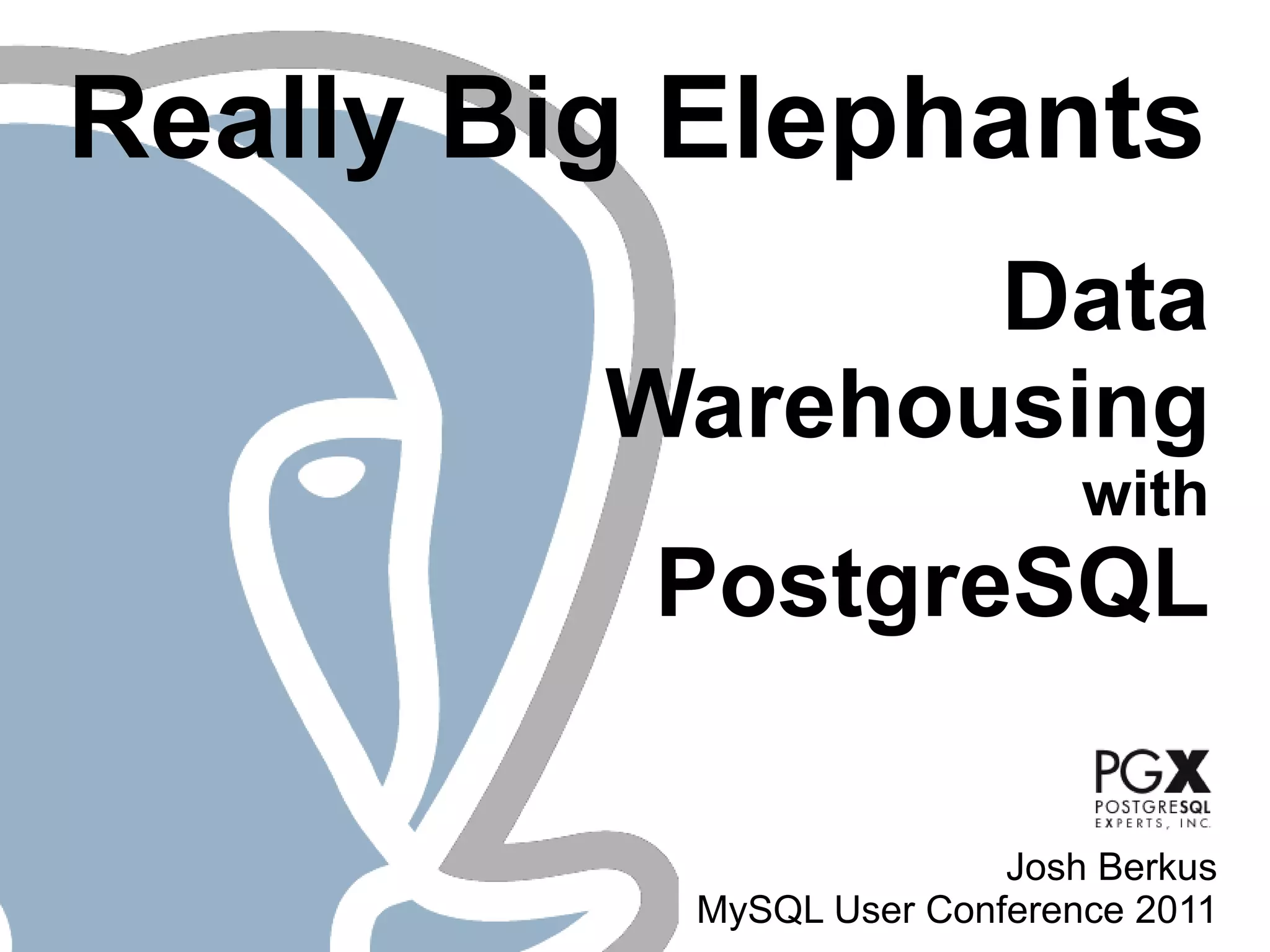 The document discusses using PostgreSQL for data warehousing. It covers advantages like complex queries with joins, windowing functions and materialized views. It recommends configurations like separating the data warehouse onto its own server, adjusting memory settings, disabling autovacuum and using tablespaces. Methods of extract, transform and load (ETL) data discussed include COPY, temporary tables, stored procedures and foreign data wrappers.