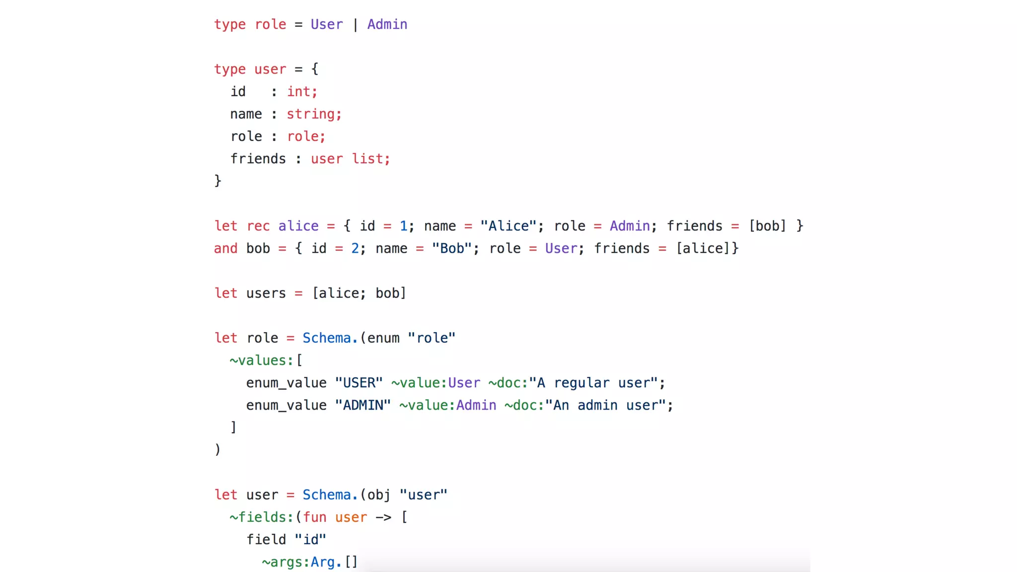 The document discusses building a full stack GraphQL application using ReasonML and OCaml syntax. It covers setting up a server, installing necessary dependencies, and creating a client with Apollo for querying users in a React application. The text also mentions best practices for name uniqueness and types generation in TypeScript alongside its benefits.