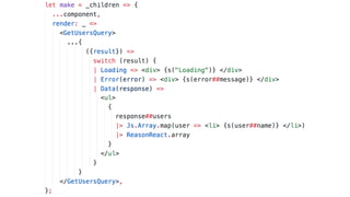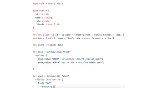 The document discusses building a full stack GraphQL application using ReasonML and OCaml syntax. It covers setting up a server, installing necessary dependencies, and creating a client with Apollo for querying users in a React application. The text also mentions best practices for name uniqueness and types generation in TypeScript alongside its benefits.