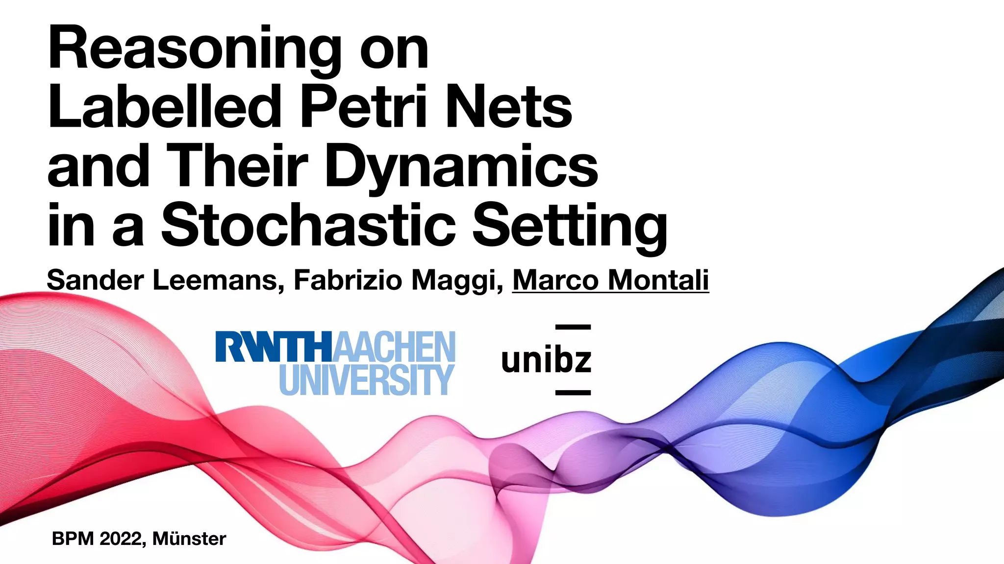 The document discusses labelled Petri nets and their application in process mining within a stochastic framework. It introduces concepts such as stochastic conformance checking, probabilistic trace alignment, and defines a labelled Petri net in detail, emphasizing its components and dynamics. The focus is on the structure of these nets and their role in modeling uncertain processes, particularly in an order-to-cash scenario.