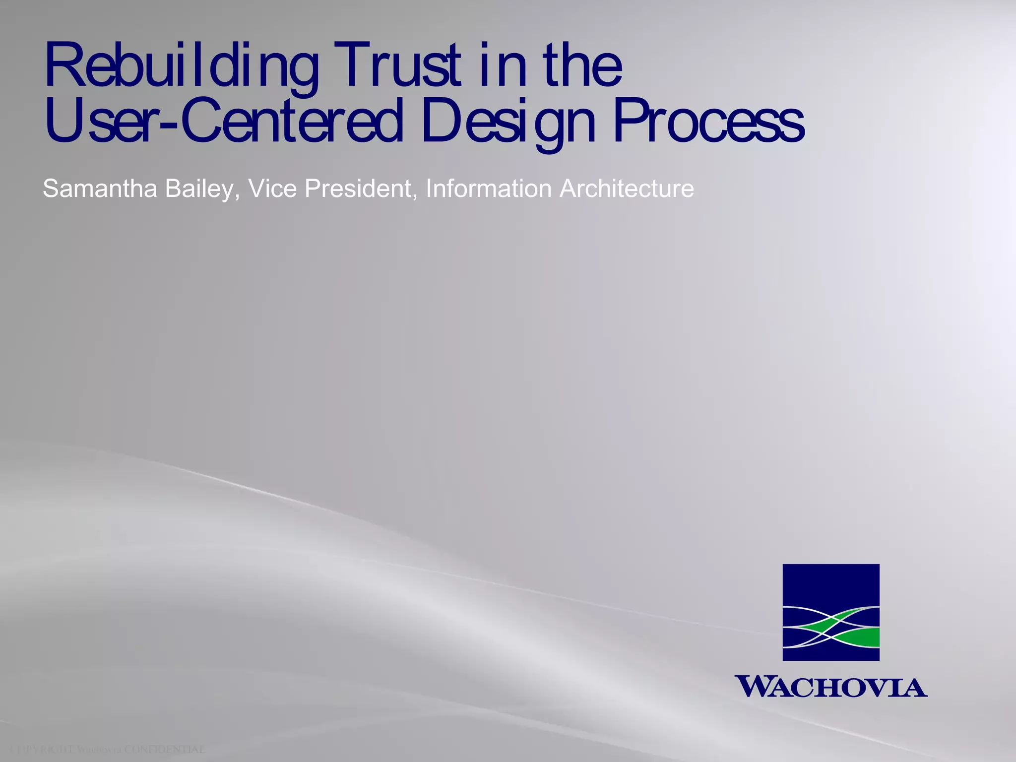 The document discusses the challenges encountered in the user-centered design process at Wachovia, highlighting initial failures due to internal politics and inadequate stakeholder engagement. It outlines the steps taken to rebuild trust, improve design methodology, and successfully meet user needs through iterative testing and collaboration. Key conclusions emphasize the importance of clear communication, involving stakeholders, and managing relationships to enhance the outcome of design projects.