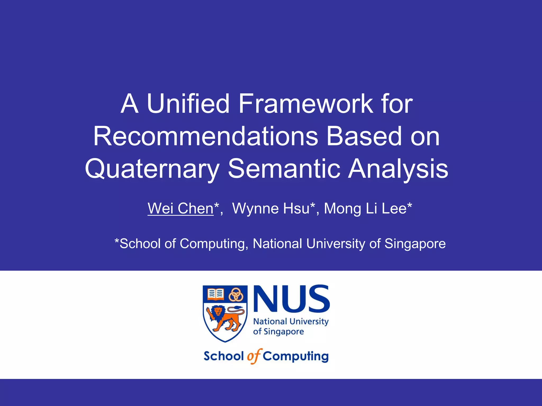 The document proposes a framework for recommendations based on analyzing relationships between users, items, tags, and ratings (quaternary relationships). It models these relationships using a 4-order tensor and applies Higher-Order Singular Value Decomposition (HOSVD) to reveal latent semantic associations. This allows generating recommendations for users, items, tags, and predicting ratings. Experimental results on a movie dataset show the proposed quaternary approach outperforms methods using only ternary relationships.