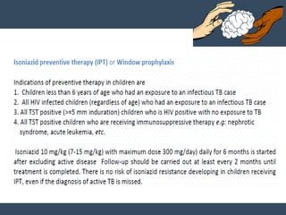 Dr. Amit Vatkar, a pediatric neurologist in Mumbai, discusses recent updates in childhood tuberculosis, highlighting diagnosis methods and treatment regimens for drug-resistant strains. The document outlines definitions of TB disease and latent infection, as well as new diagnostic tools recommended by WHO, such as nucleic acid amplification tests. Key recommendations include the use of Xpert MTB/RIF for diagnosing various forms of TB in children.