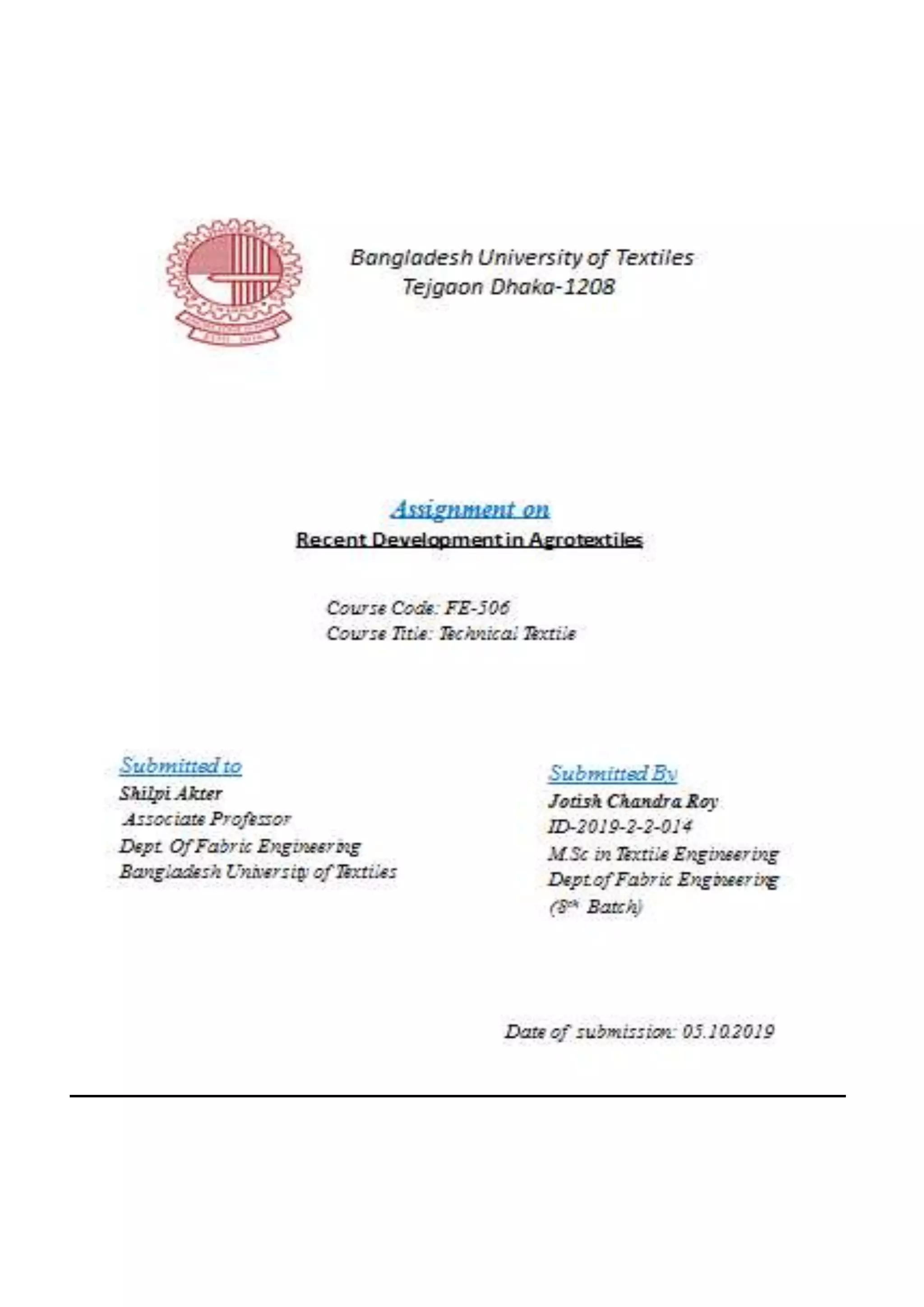 Agrotextiles are textiles manufactured for agricultural applications such as agriculture, horticulture, and animal husbandry. They are used to control the environment for plants and animals. Recent developments in agrotextiles include polymer fibre balls as a soil substitute, screening fabrics for sunlight management, knitted net hoses for water transportation, superabsorbent polymer fibre mats for water management, and composites of hemp or polypropylene for reducing soil pollutants. For agrotextile products to be effective, they require properties such as resistance to solar radiation, weather, ultraviolet radiation, the ability to retain water, biodegradability, light weight, and resistance to microorganisms.