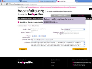 ens donen la contrasenya i nom d’usuari i podem penjar la oportunitat que volem… oferir pels voluntaris.
