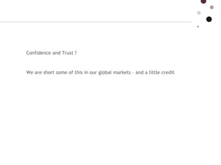 The document discusses four steps to help businesses survive a recession: 1) Understand how to take market share from competitors by identifying their strengths and weaknesses. 2) Create a competitive advantage to eliminate competitors' advantages by focusing on brand positioning. 3) Build customer loyalty by training employees to be brand advocates. 4) Use cost-effective online communication strategies like social media to communicate with customers at a low price. The overall strategy aims to make businesses "recession proof" through competitive analysis, brand management, customer loyalty, and digital marketing.