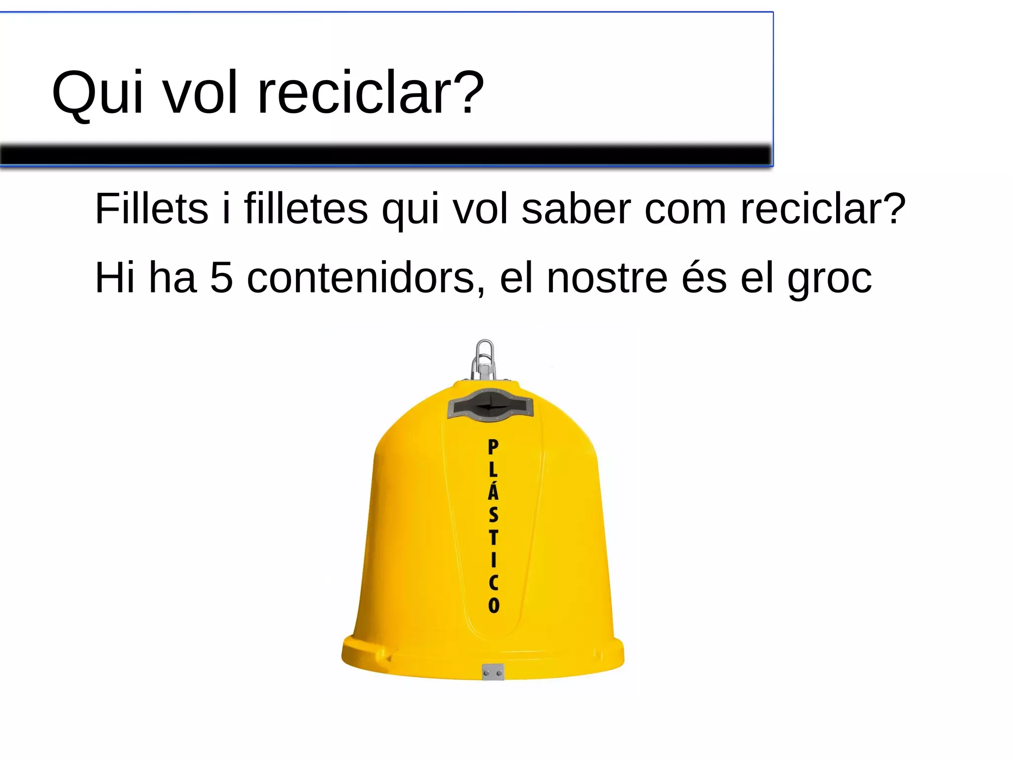i filletes qui vol saber com reciclar? Hi ha 5 contenidors, el nostre és el groc