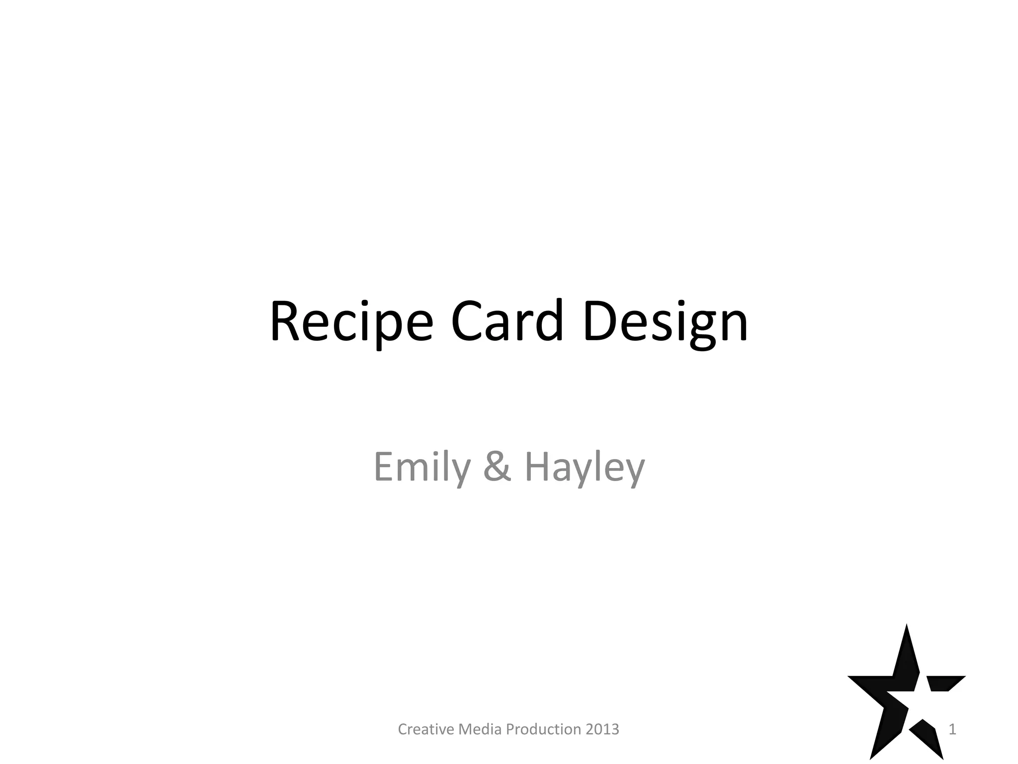 The document contains recipes and design plans for recipe cards. It includes 10 recipes from different cuisines like British, Italian, American, Chinese, Mexican, French and Thai. It also includes draft designs and flat plans for the front and back of the recipe cards, exploring different layouts, fonts, images and color schemes. The document provides visual examples and descriptions for the recipe card design elements to help guide the creation of the cards.