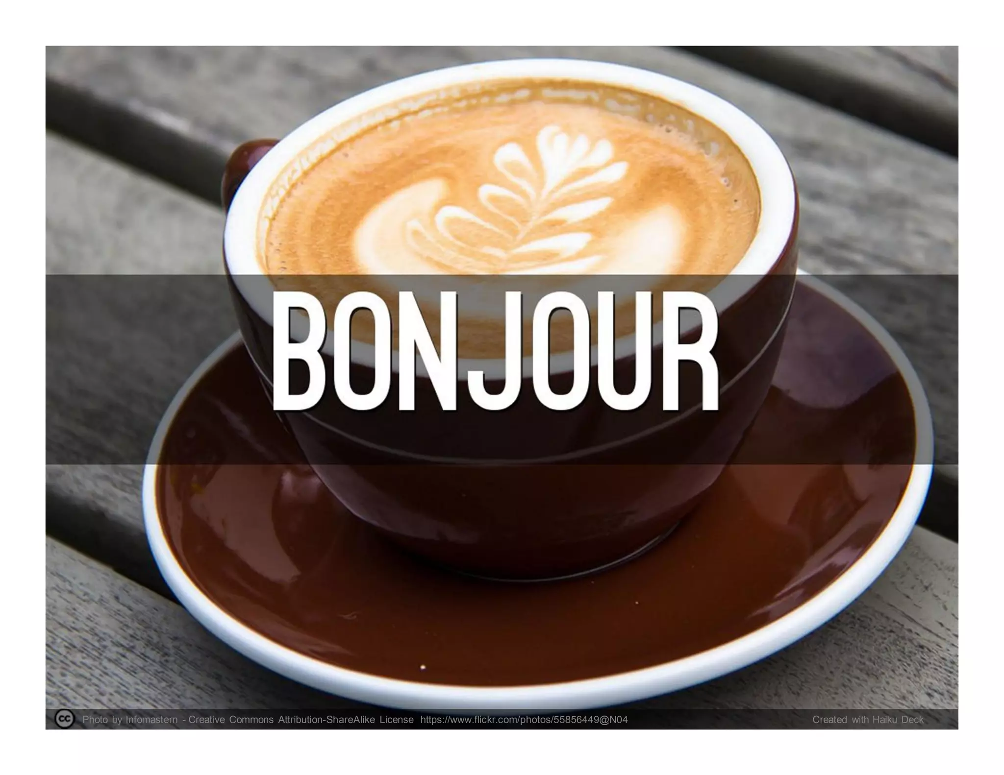 The document features a collection of various images and licenses attributed to different photographers, primarily focusing on Creative Commons licenses. It also includes information on surveys and data from numerous countries, noting feelings and experiences related to recognition, communication, and goal-setting in collaborative environments. Additionally, it highlights contact information and contributions from various sponsors for an event or presentation.