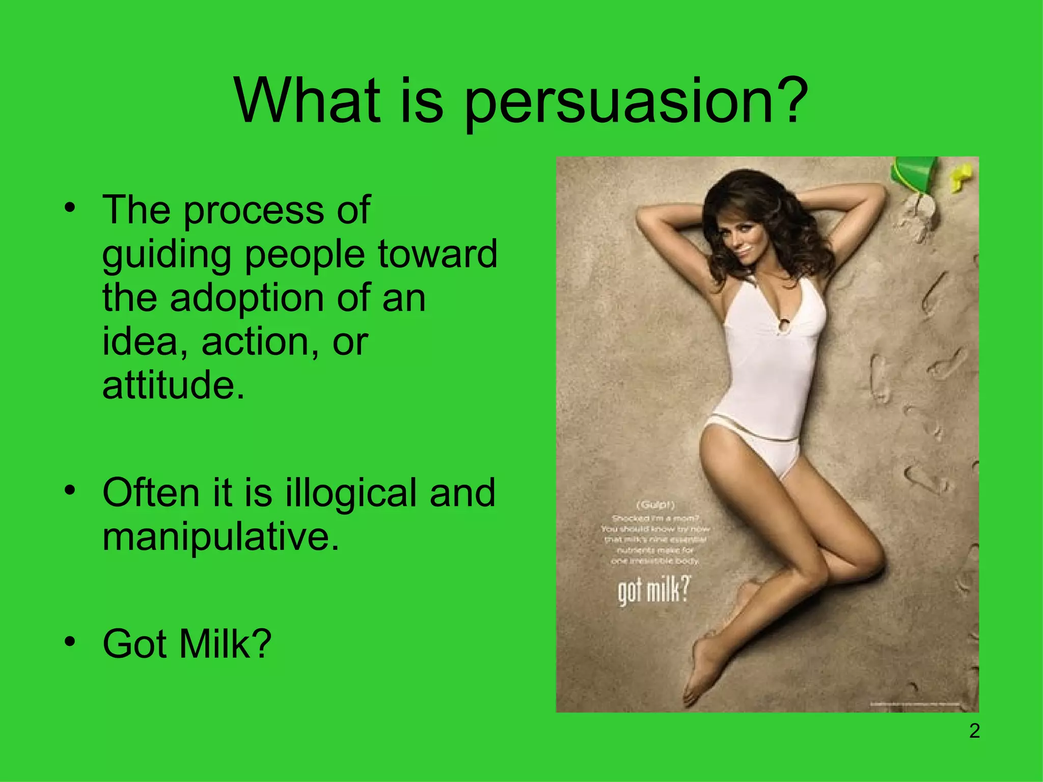 The document discusses common propaganda techniques such as logical fallacies, emotional appeals, and misleading language that are often used in advertising and political persuasion. It provides examples of logical fallacies like circular reasoning, overgeneralization, and false analogy. Additionally, it examines emotional appeals like fear, pity, and bandwagoning that aim to manipulate attitudes.