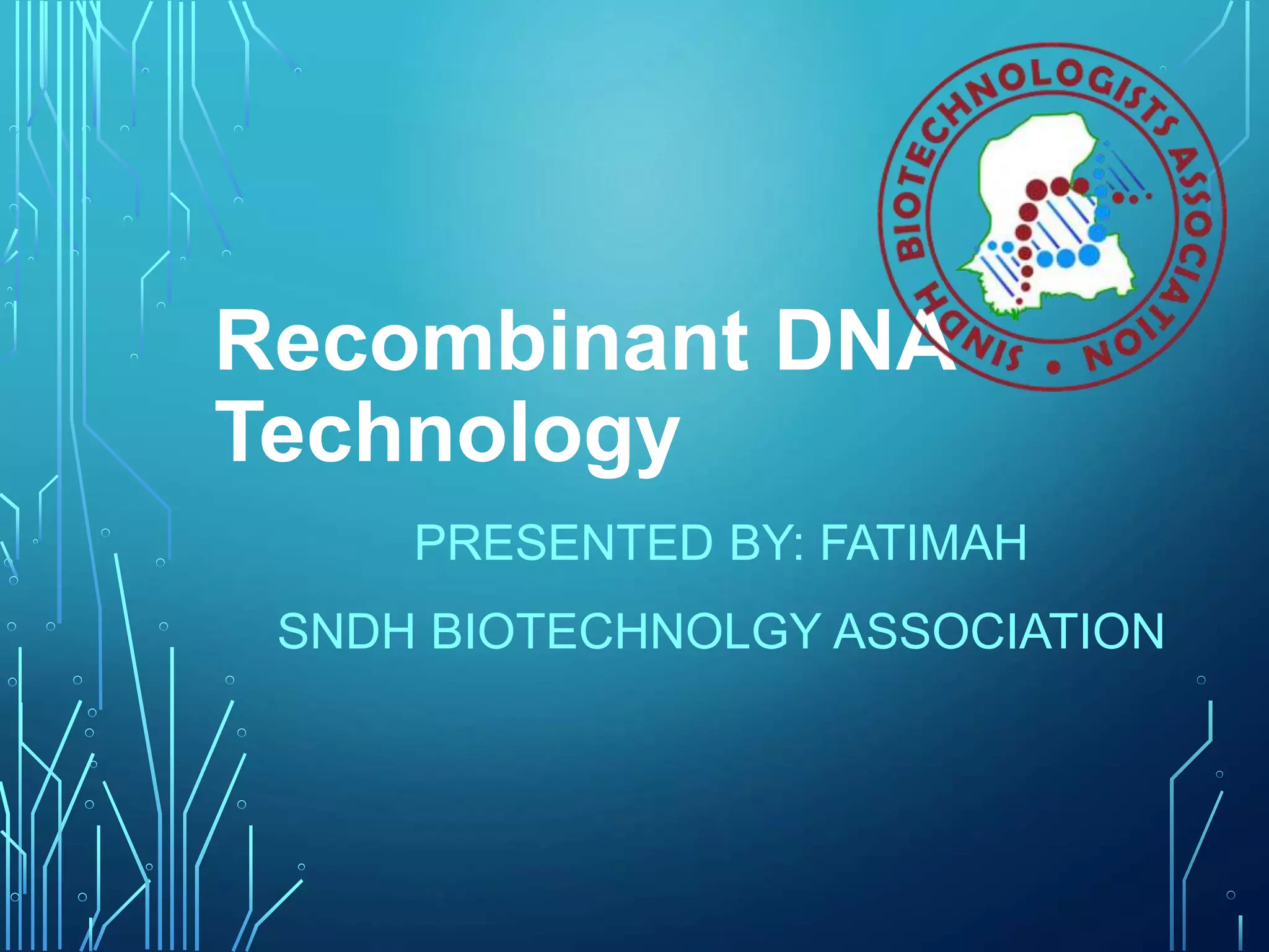 Recombinant DNA technology involves procedures to recombine DNA segments, enabling cloned molecules to replicate within host cells. Developed by Boyer and Cohen in 1973, it allows for large-scale production of human proteins, such as insulin, using genetically engineered bacteria and explores potential applications in gene therapy for genetic diseases. Safety concerns exist regarding the possible creation of pathogenic recombinant bacteria and the recommendations of containment practices are supported by the Recombinant DNA Advisory Committee.