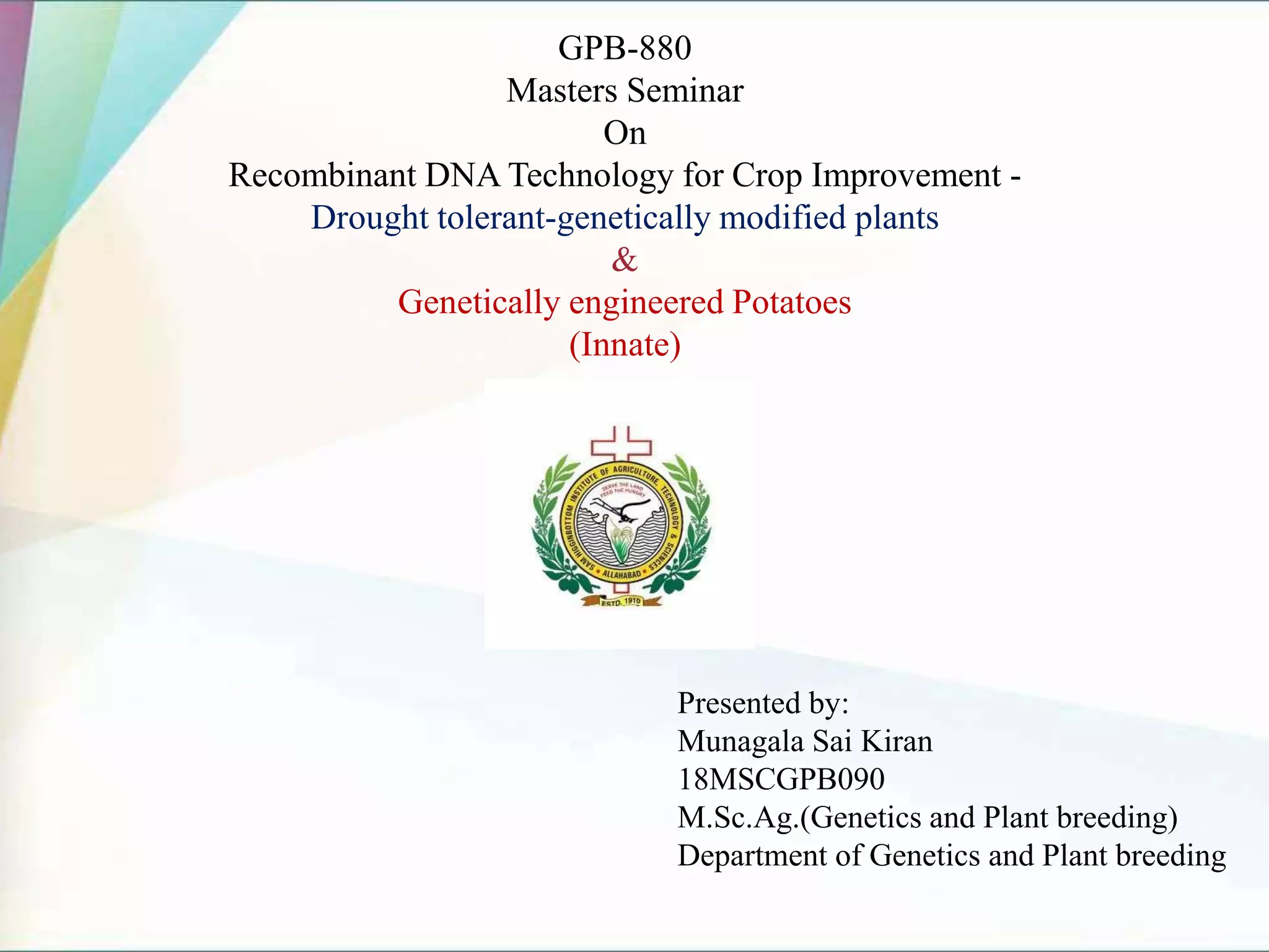 1) Drought tolerant transgenic plants developed using genes for abiotic stress tolerance through genetic engineering. Genes used include structural genes for late embryogenesis abundant (LEA) proteins and regulatory genes for key enzymes. This allows improved water stress management compared to conventional breeding.