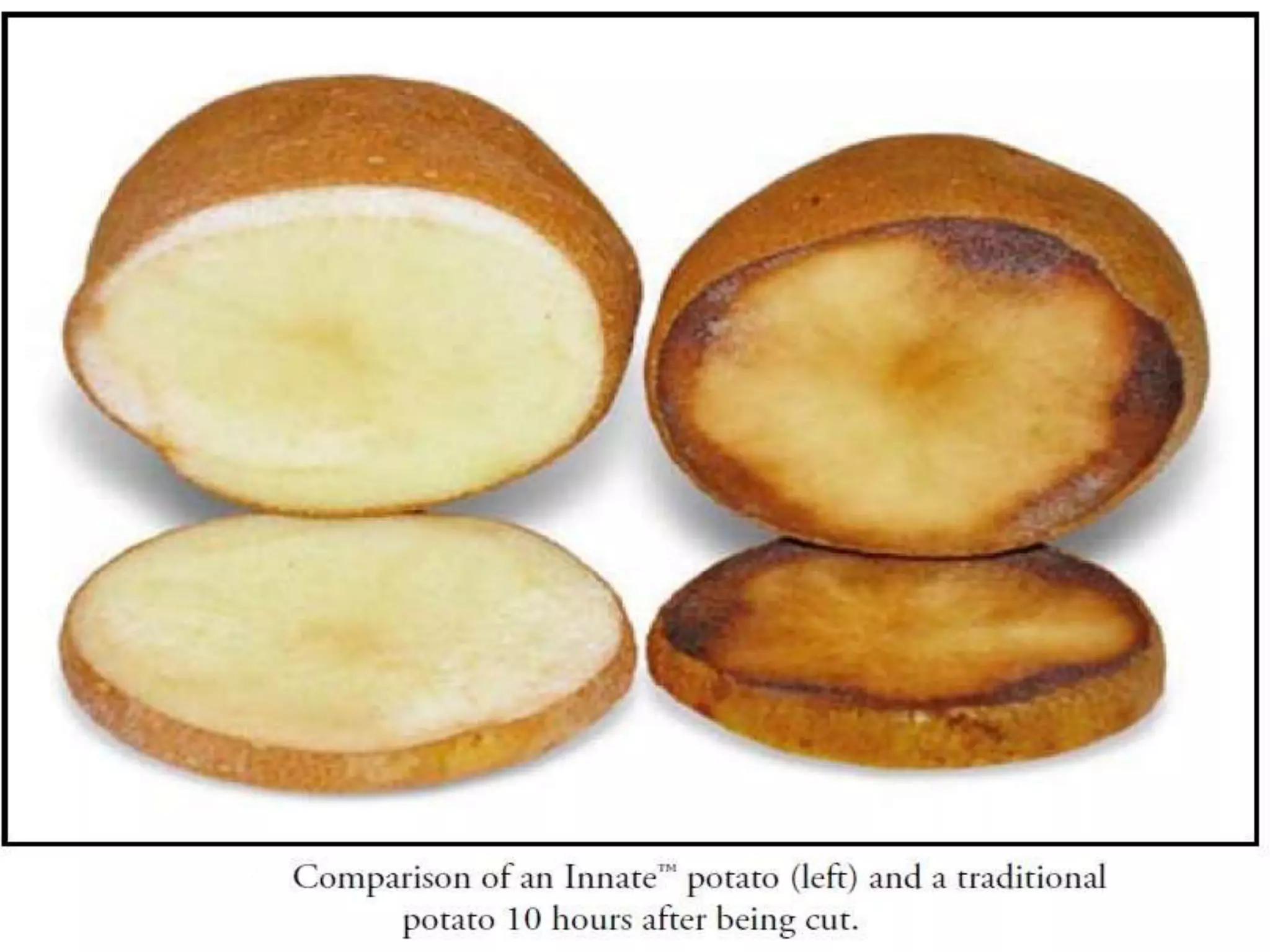 2) Genetically engineered potatoes (Innate) modified using RNA interference to suppress expression of certain genes to reduce browning and increase resistance to bruising and soft rot. This helps improve potato quality and shelf life.